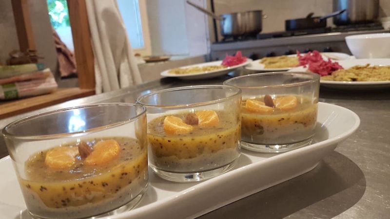 L'alimentation est donc végétarienne, à base de produits bio, en grande partie en alimentation vivante. Nos repas sont facilement adaptables aux régimes sans gluten, sans lactose ou vegan, n'hésitez pas à nous préciser vos besoins lors de votre inscription. Pendant les temps de pause vous seront proposés tisanes, thé et fruits.